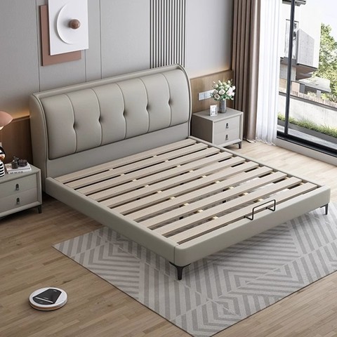 Cama doble de lujo moderna de 1,8 m para apartamentos pequeños Dormitorio principal simple Nueva tapicería suave Almacenamiento de apartamento pequeño de madera