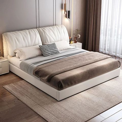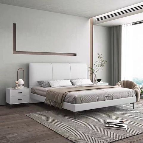 Elefante italiano Oreja Cuero Arte Cama Elegante Simple Lujo Moderno Italiano Minimalista Boda Cama para Master Up-Cama con funda